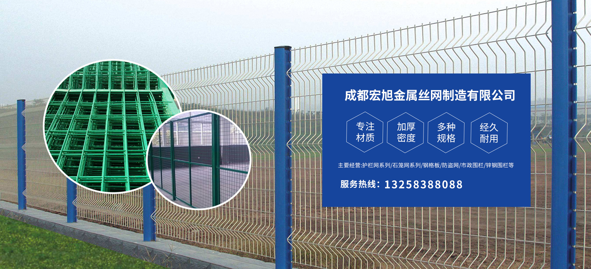 成都宏旭金屬絲網(wǎng)制造有限公司主營(yíng)護(hù)欄網(wǎng)系列、石籠網(wǎng)系列、鋼格板、防盜網(wǎng)、市政圍欄、鋅鋼圍欄、鋼筋網(wǎng)片、聲屏障系列、波形護(hù)欄板、柔性纜索護(hù)欄、SNS邊坡防護(hù)網(wǎng)等其他絲網(wǎng)類(lèi)產(chǎn)品。特殊規(guī)格可加工定做,也可根據(jù)客戶(hù)來(lái)圖來(lái)樣定做。自創(chuàng)業(yè)以來(lái),公司一直堅(jiān)持市場(chǎng)為導(dǎo)向,以客戶(hù)為根本,以實(shí)業(yè)為基礎(chǔ),以技術(shù)為支持,以科研為后盾,集科研、生產(chǎn)、經(jīng)營(yíng)為一體,不斷研制開(kāi)發(fā)新產(chǎn)品,開(kāi)拓市場(chǎng),走綜合發(fā)展之路。多年來(lái),公司憑借過(guò)硬的質(zhì)量,良好的信譽(yù)、優(yōu)質(zhì)的服務(wù)、合理的價(jià)格,贏(yíng)得了市場(chǎng)和商家的一致好評(píng)。